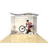Sleek and “EZ”, our tension fabric systems are a great alternative to standard backwall displays. Quickly assembled in just 5 minutes, slide the tubes together to make the frame and lock in place with a push button snap, then simply pull the pillowcase-like graphic over the frame and zip it shut. The zipper, hidden from view, tightens the stretch fabric beautifully displaying your image. Disassembled, this lightweight frame and graphic fits inside its included bag.